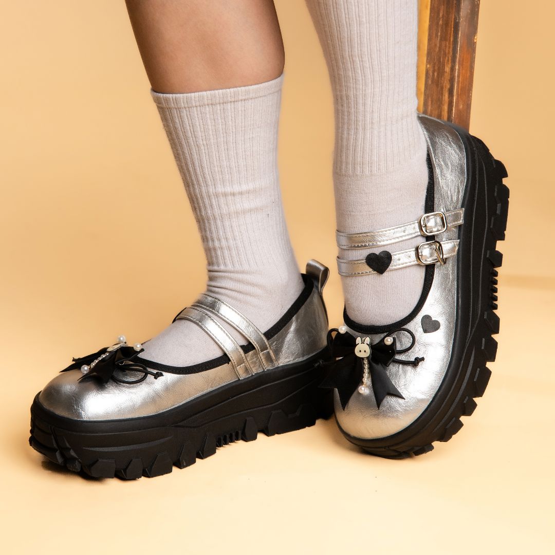 Moonlight Silver Bunny Mary Janes Platform Sneakers - Women's