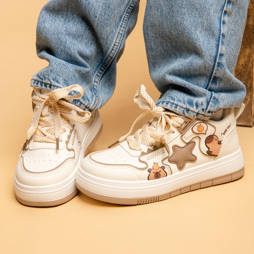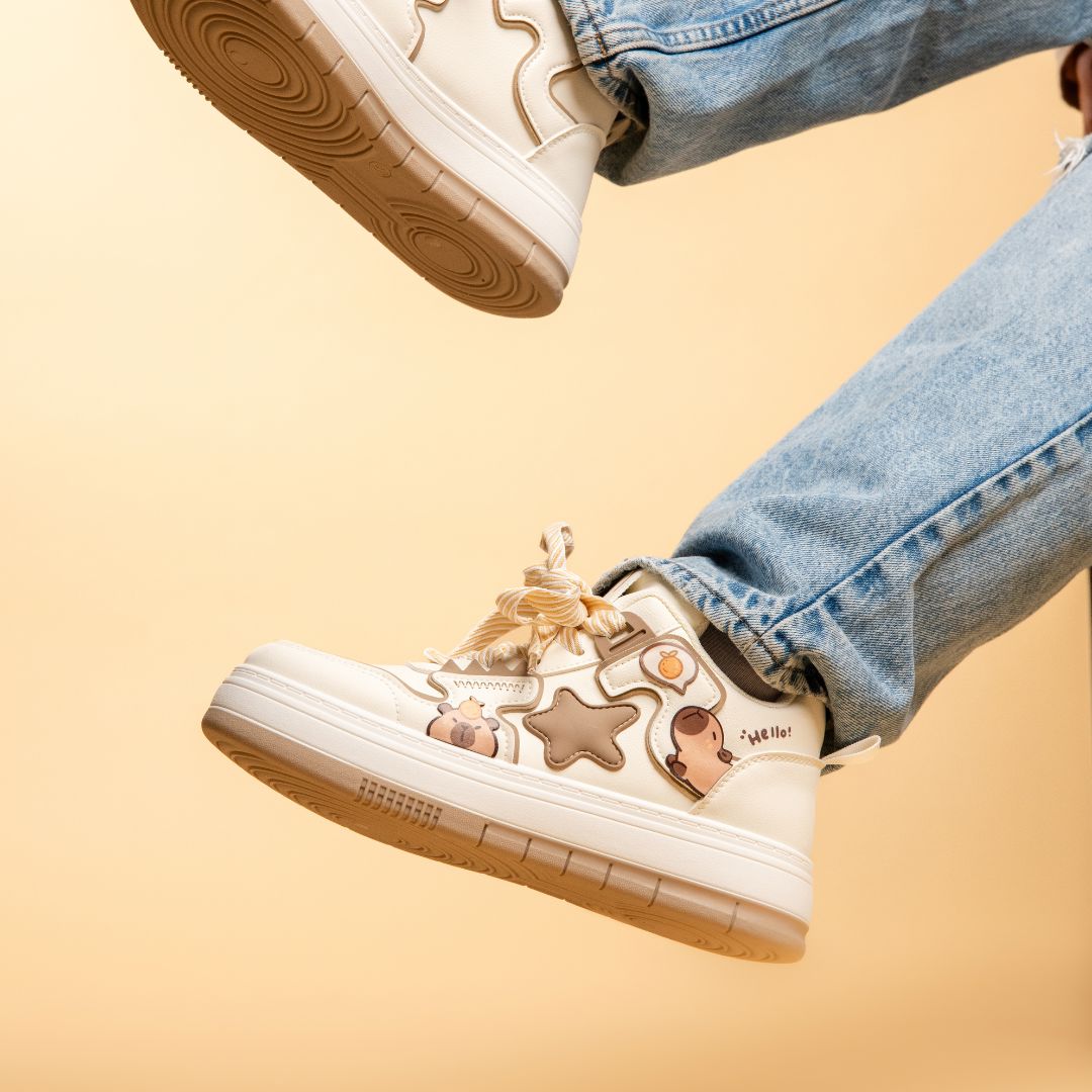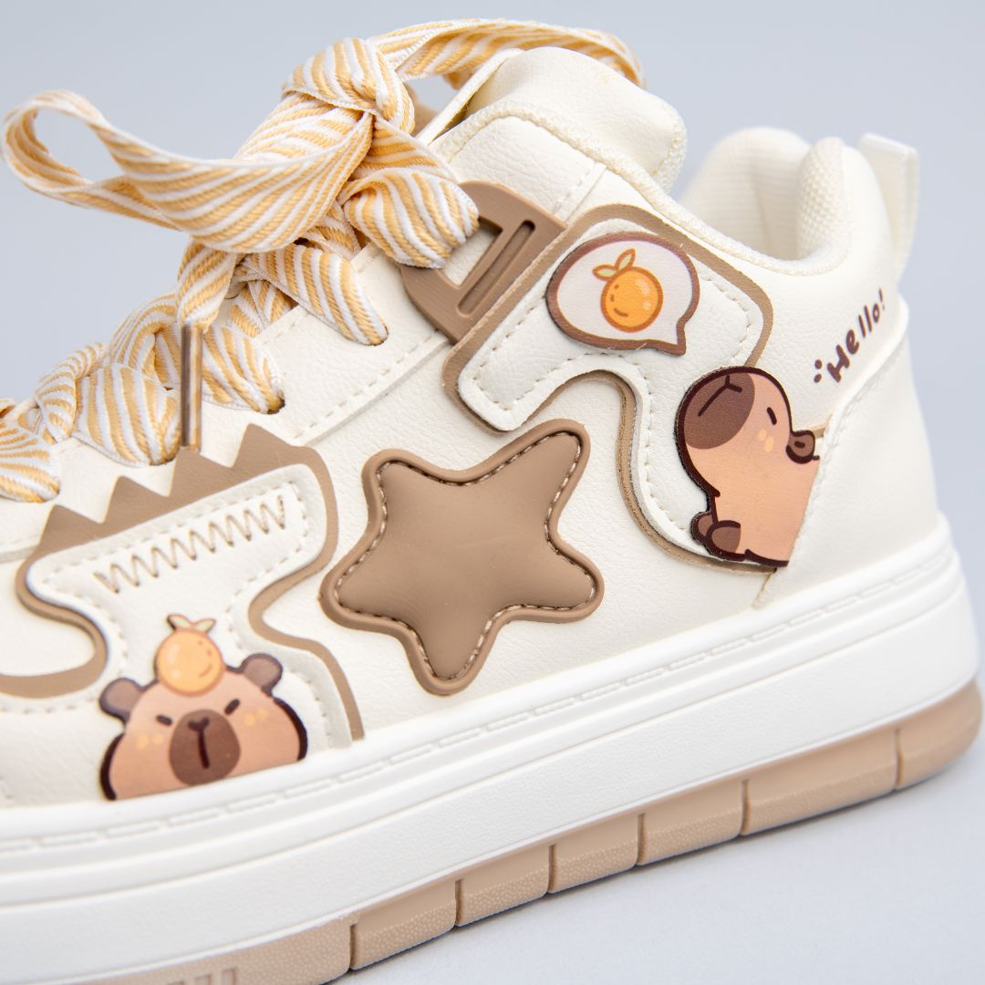 - Say hello to your new go-to Mid Top sneakers! Our Ultra-Friendly Capybara Chunky Mid-Top Shoes feature cuddly capybara characters and a chunky platform sole that keeps you comfy from class to coffee runs.