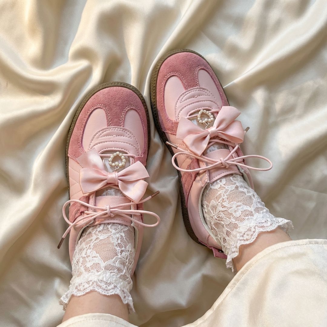 Balletcore Pretty Pink Bow Heart Sneakers - Women's Bobo's House