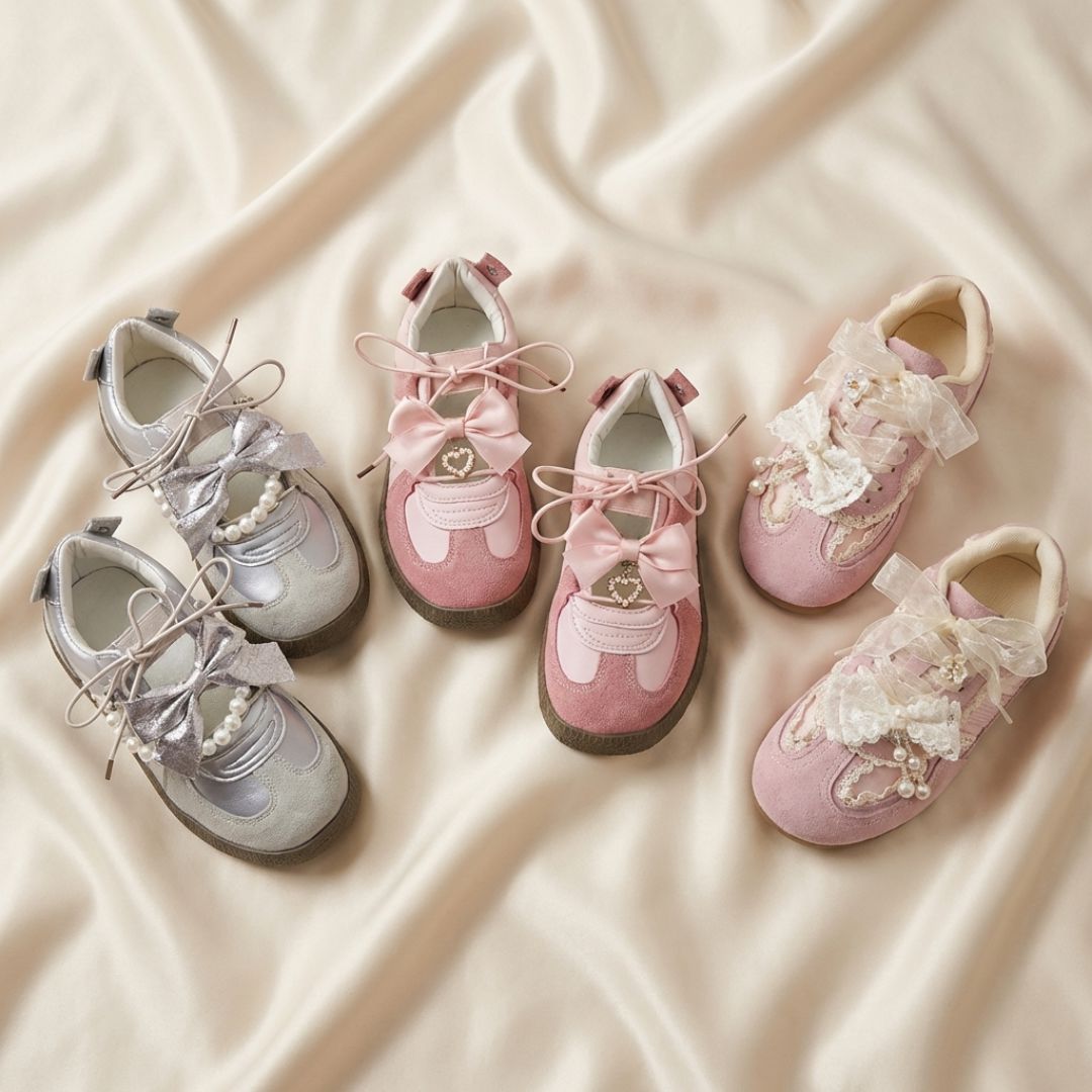 • Your daily dose of romance, now in a sheer ballet sneaker. Meet the Balletcore Pretty Pink Bow Heart Sneakers, a romantic Valentine’s Day inspired style designed with delicate lace, satin bows, and pink heart charms. Featuring a subtle see-through lace upper paired with a heart charms, this pair blends balletcore aesthetics with everyday sneaker comfort.
