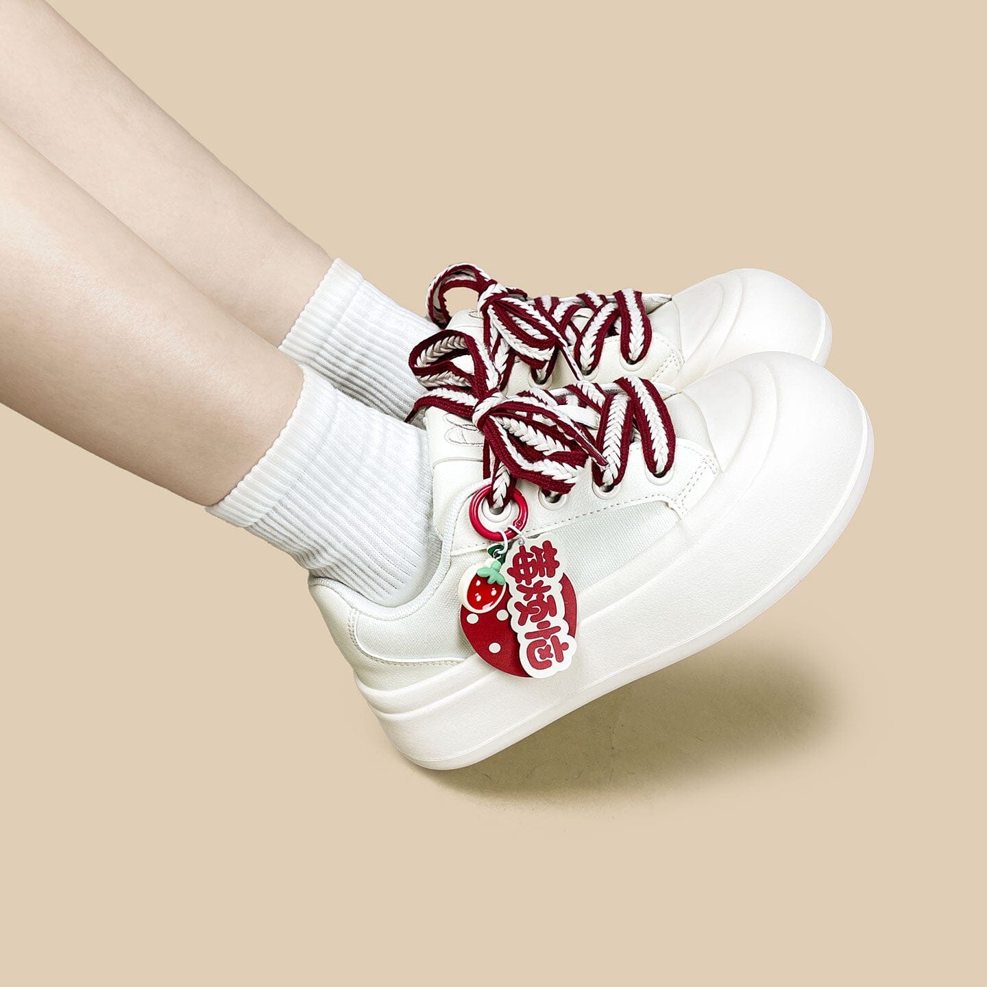 • Designed with deep berry-toned laces and an oversized strawberry charm to make this your sweetest pair of shoes yet, this pair blends nostalgic kawaii details with everyday comfort.