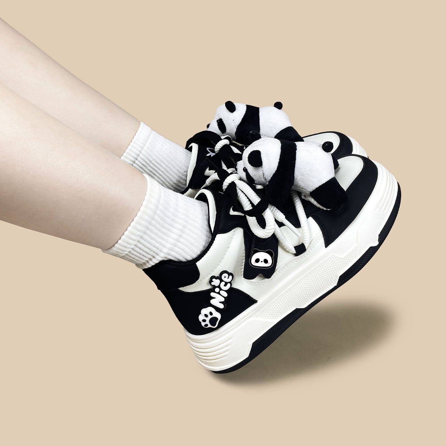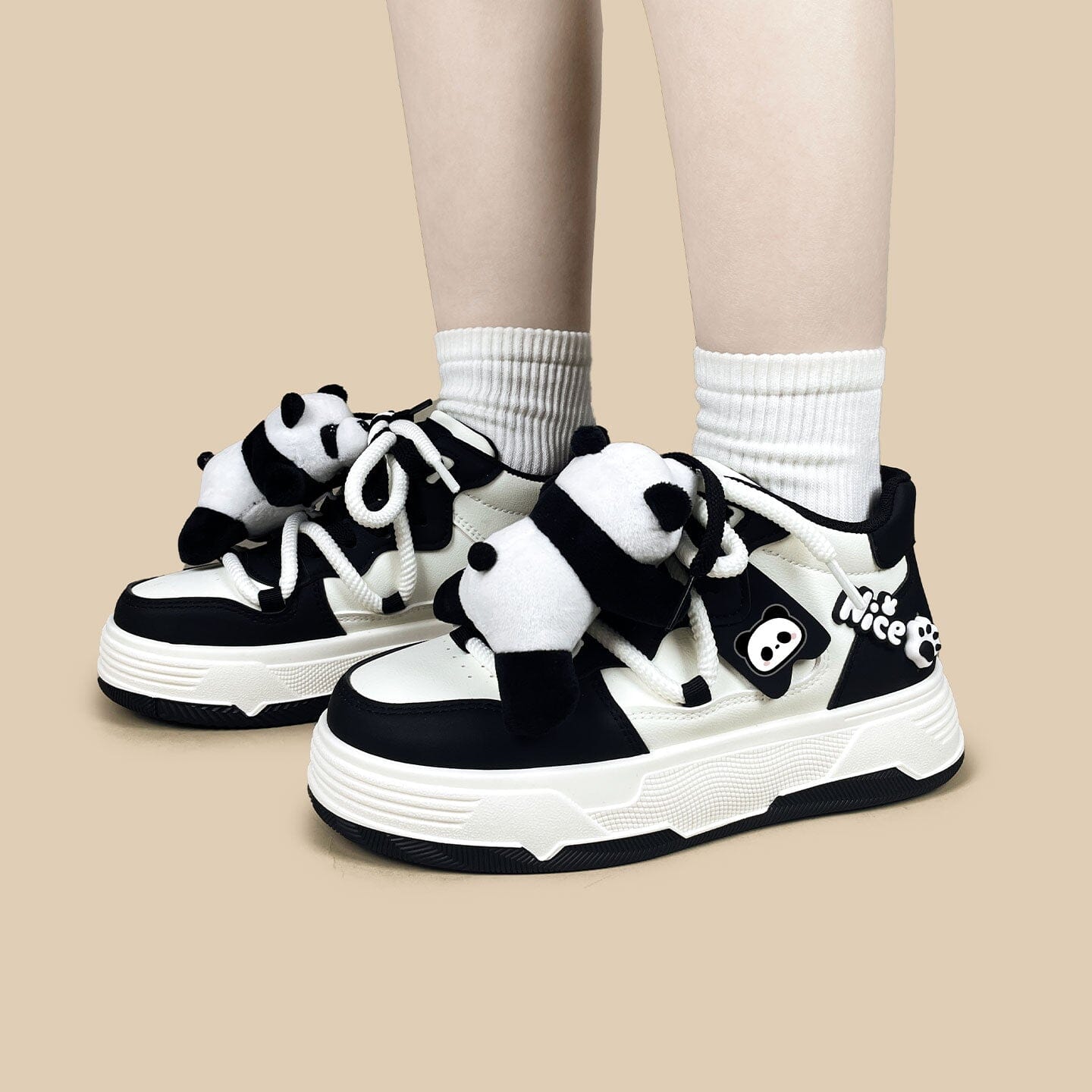 - Soft, cuddly, and made to stand out instantly, meet your new favorite statement everyday kawaii shoes. Introducing our Plush Panda Chunky Mid Top Shoes, a bold black-and-white design inspired by cozy panda hugs, playful charm details, and effortless everyday comfort.