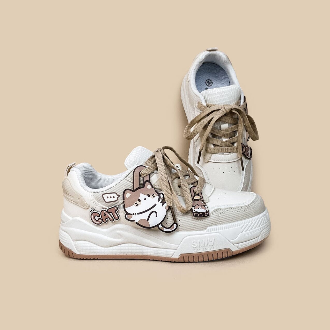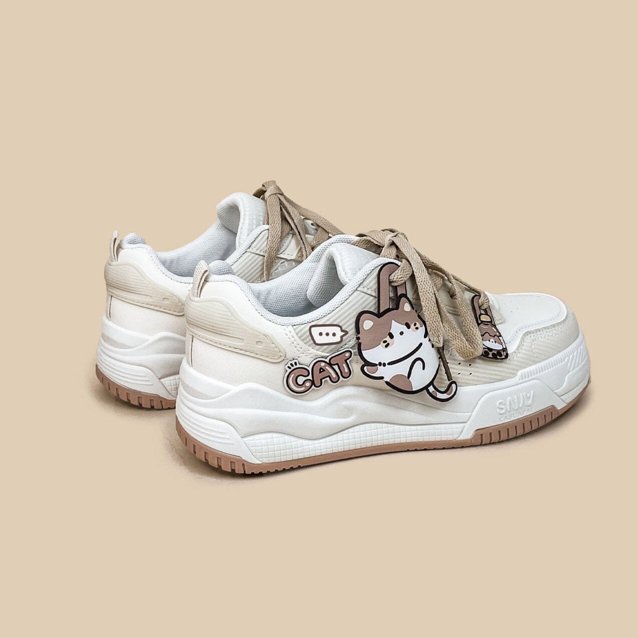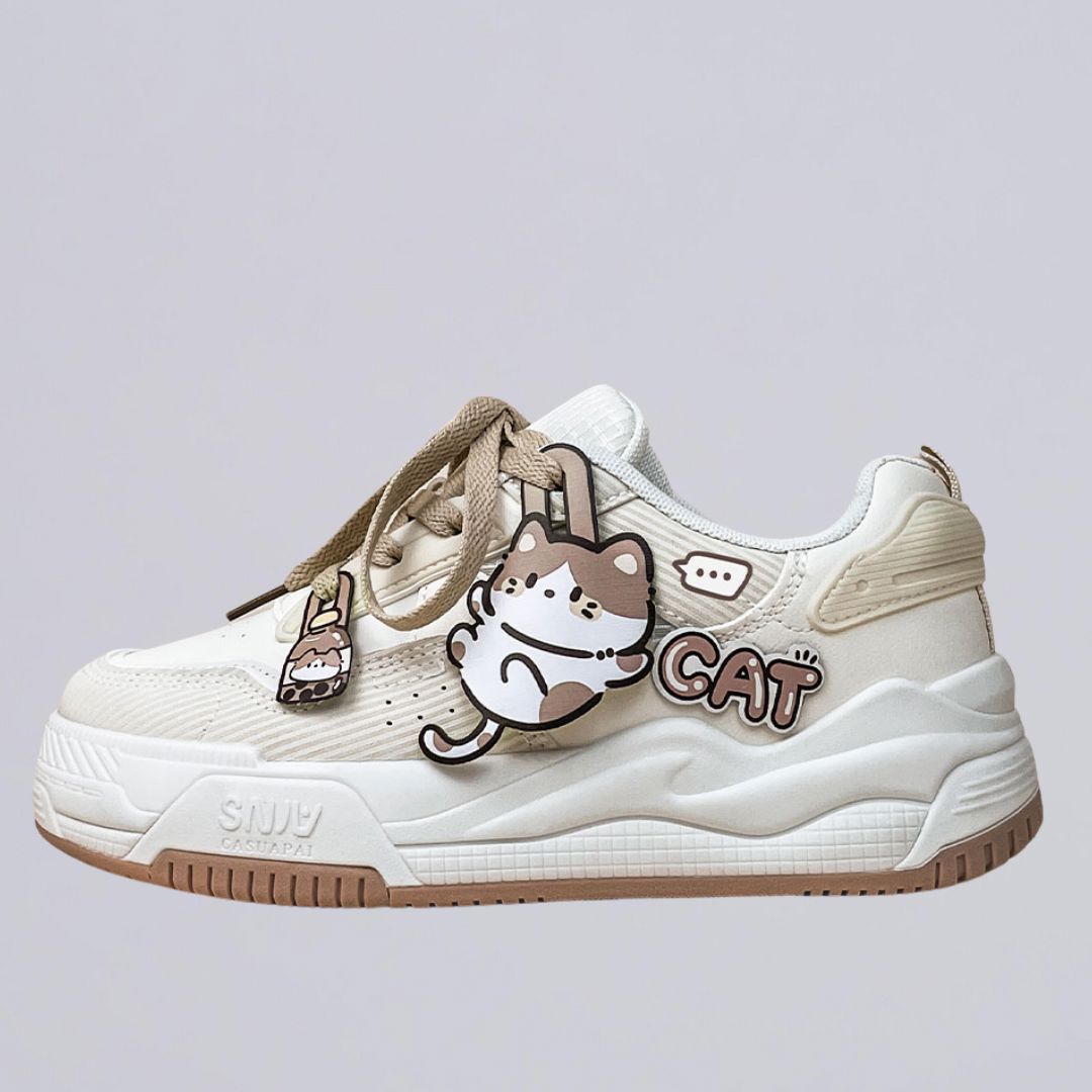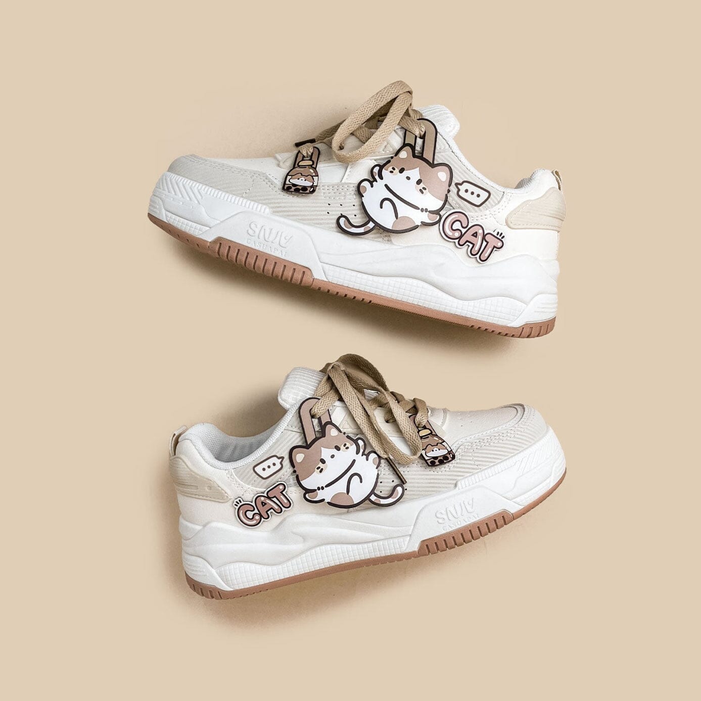 Boba Lovin Chubby Kitty White Sneakers - Women's Cat Bobo's House
