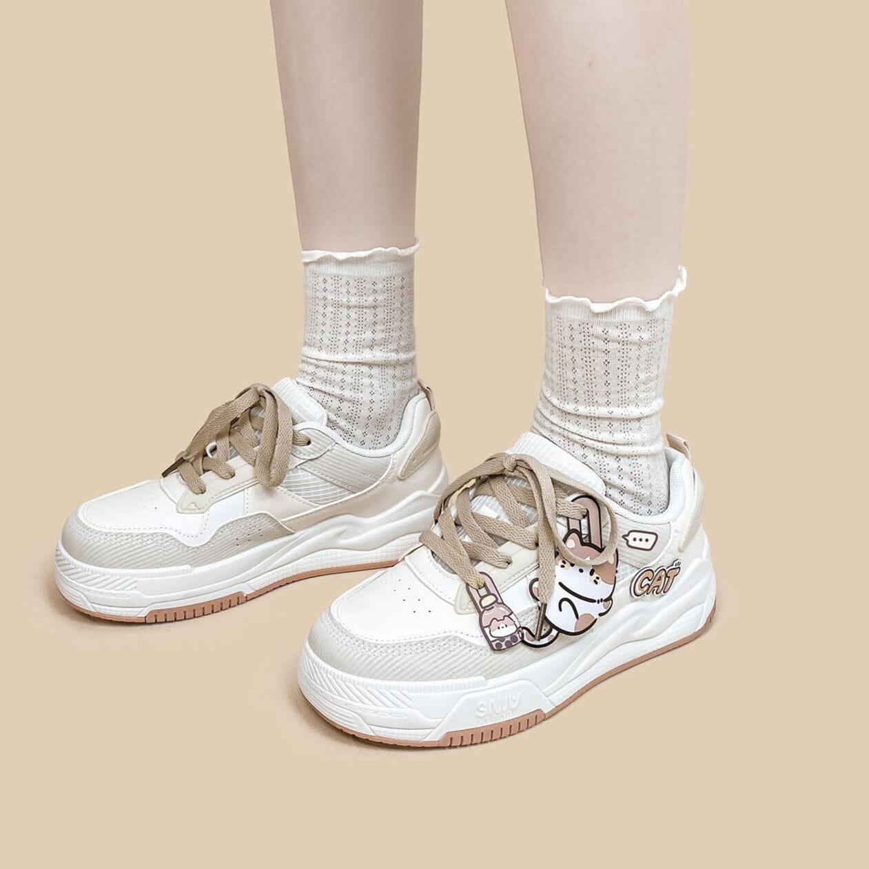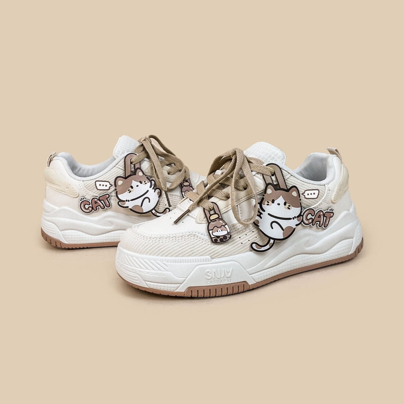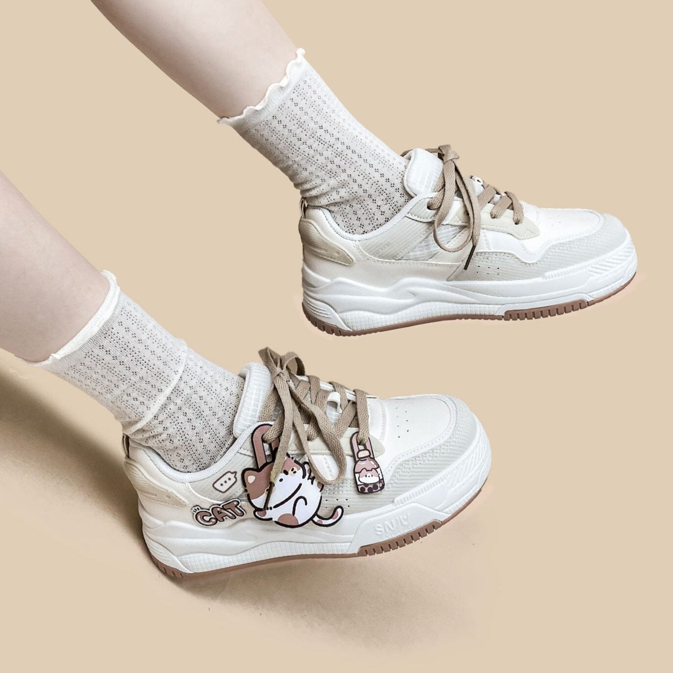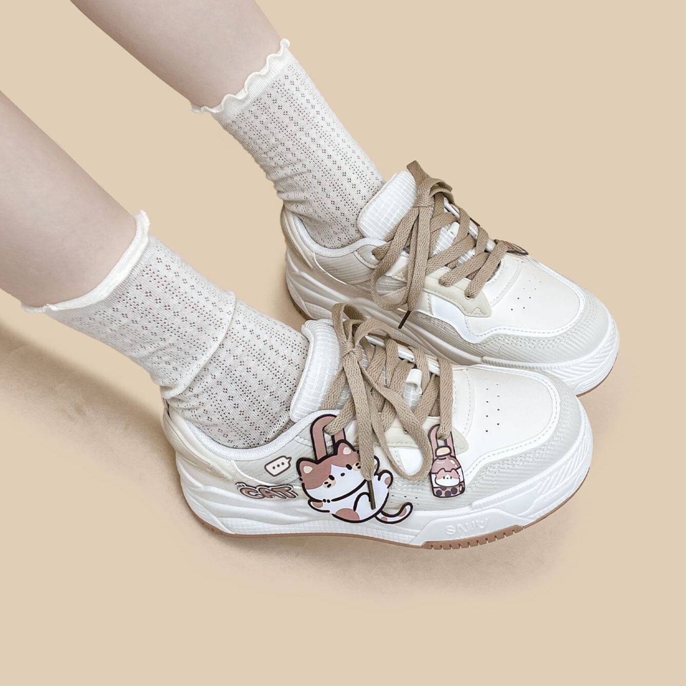 Boba Lovin Chubby Kitty White Sneakers - Women's Cat Bobo's House
