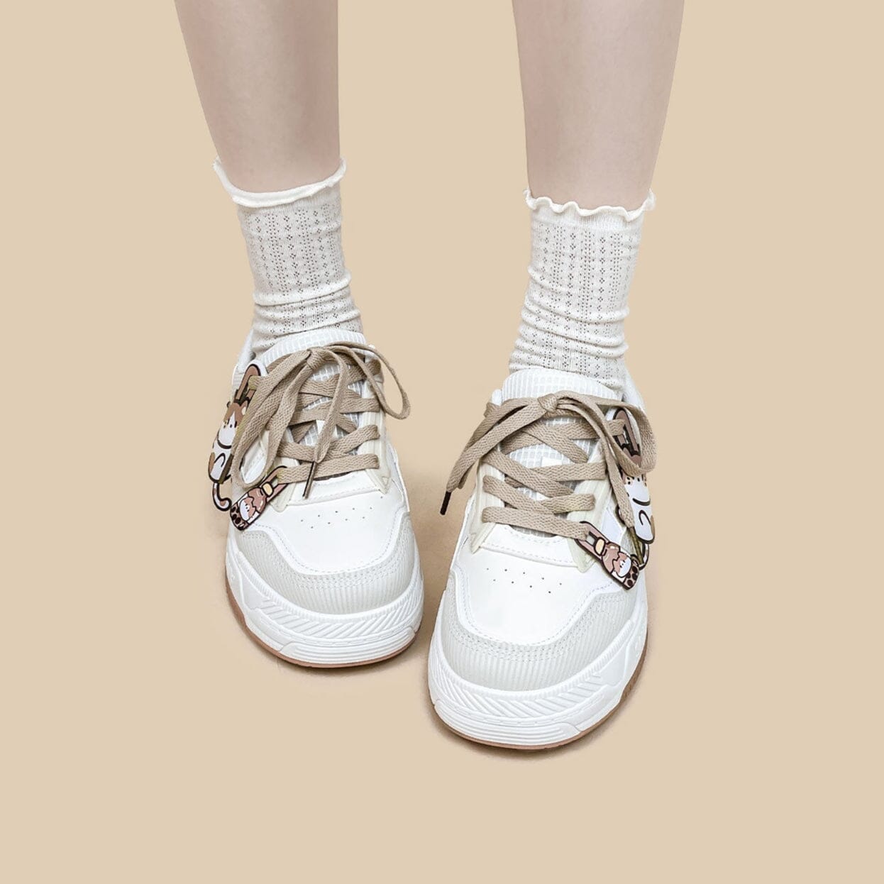 Boba Lovin Chubby Kitty White Sneakers - Women's