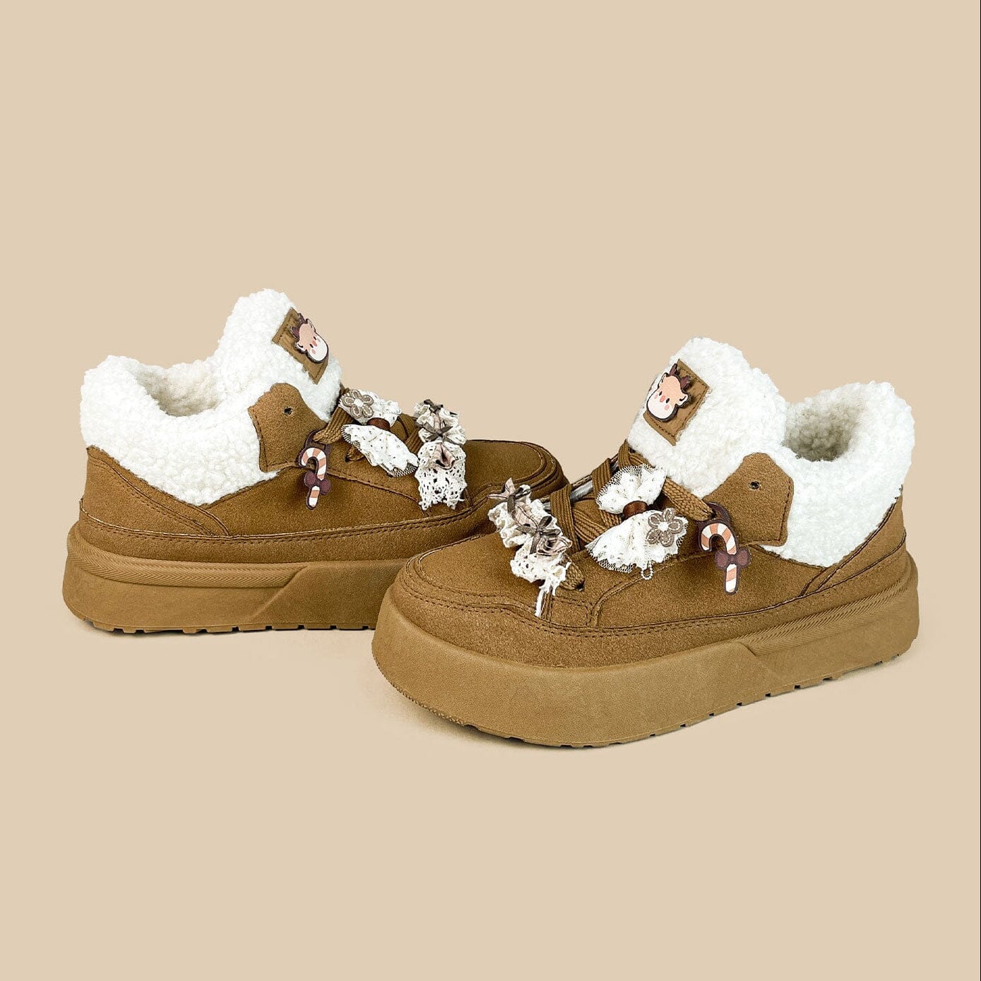 • Features an extra-chunky sole for comfort and durability, plush fleece cuff for warmth, and a bold brown colorway that matches any outfit. Perfect for kawaii lovers, cozy-core fashion fans, and anyone who believes comfort should still be adorable.