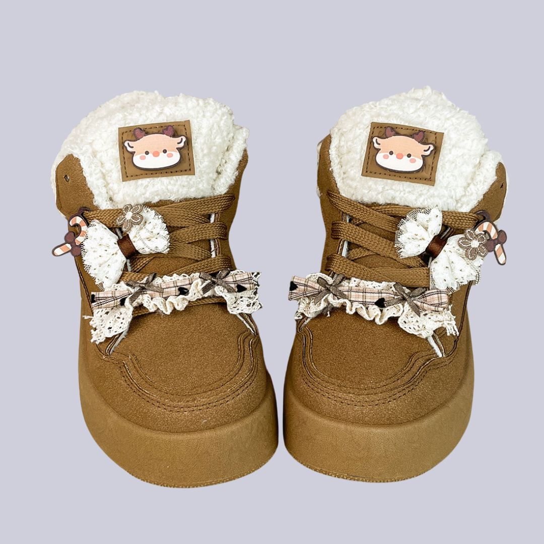 Cozy Reindeer Ultra Chunky Brown Mid Top Shoes - Women's Reindeer Bobo's House US 5 | EU 35