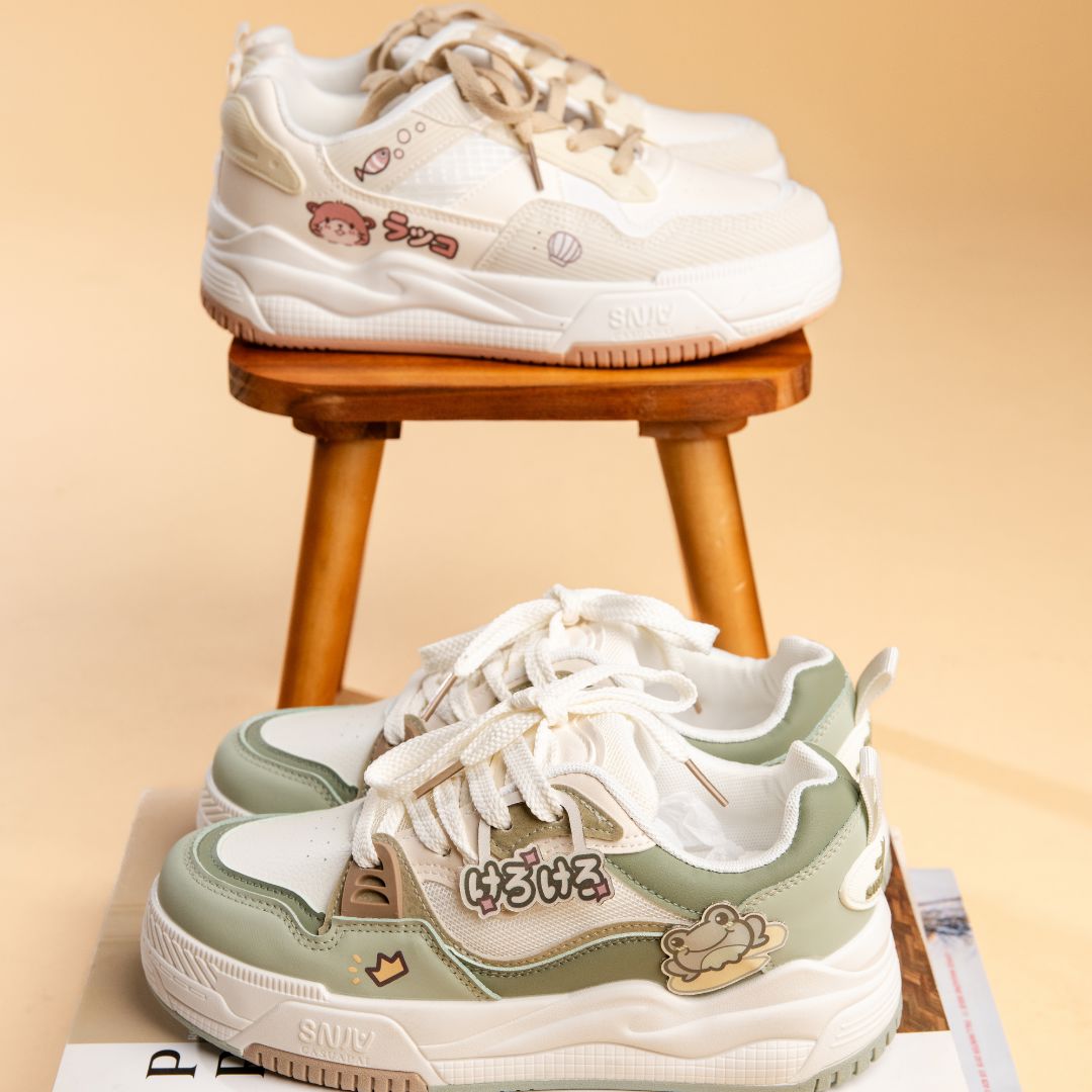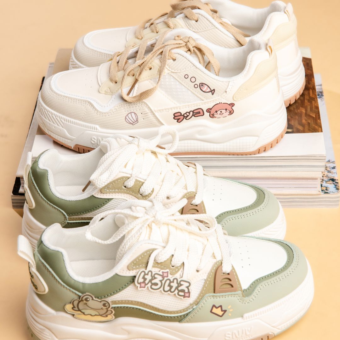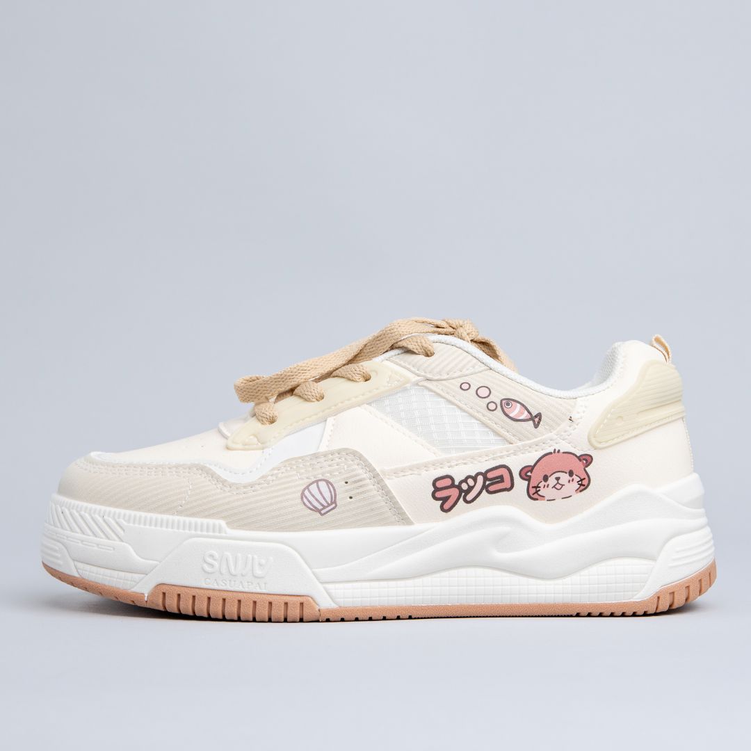 • Bring a splash of playful energy to your outfits with our Ultra Friendly Sea Otter White Sneakers. Featuring an adorable otter mascot surrounded by seashells and fish graphics plus Japanese lettering, these sneakers turn everyday wear into a cute seaside adventure. The supportive sole keeps you light on your feet from morning errands to late-night hangouts.