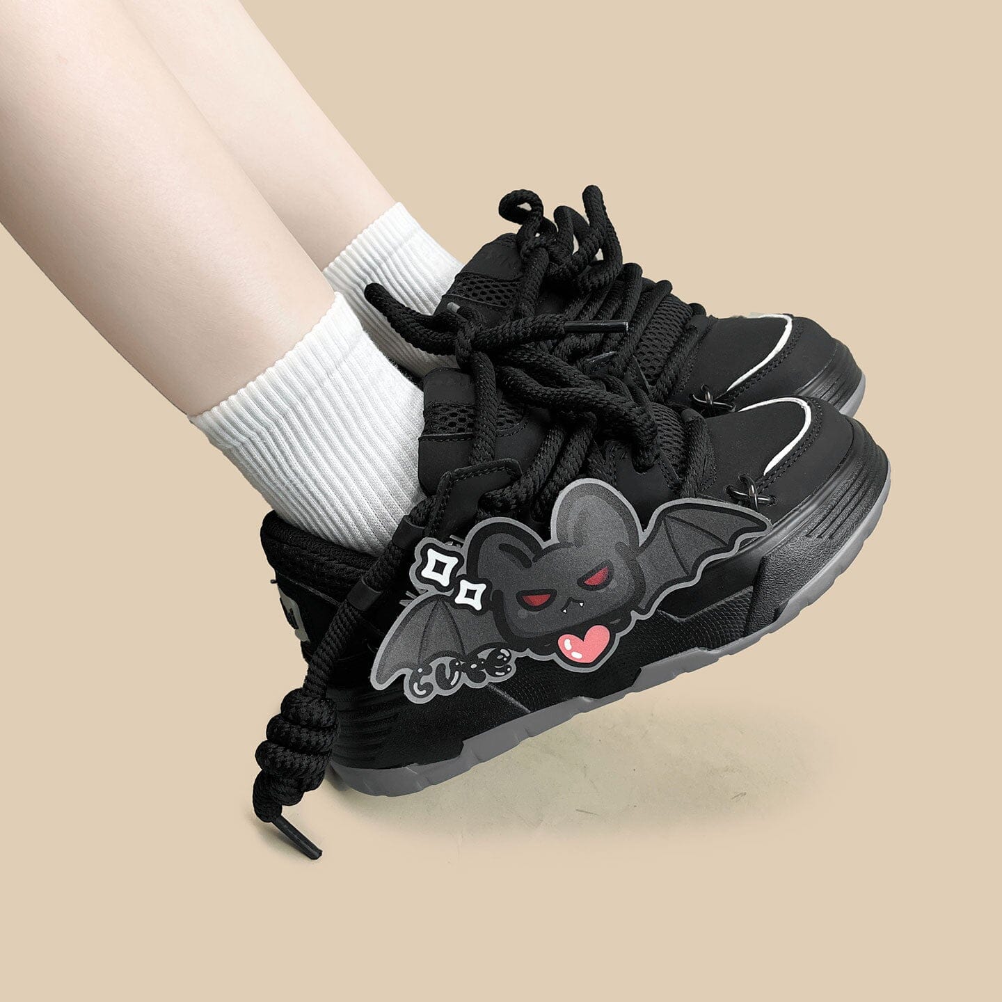 • Upgrade your shoe game with these kawaii bat chunky sneakers—the perfect blend of comfort, durability, and guaranteed compliments 🖤✨