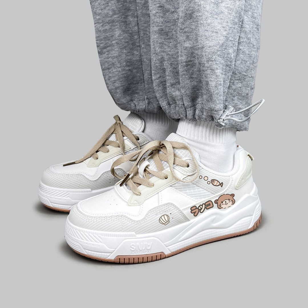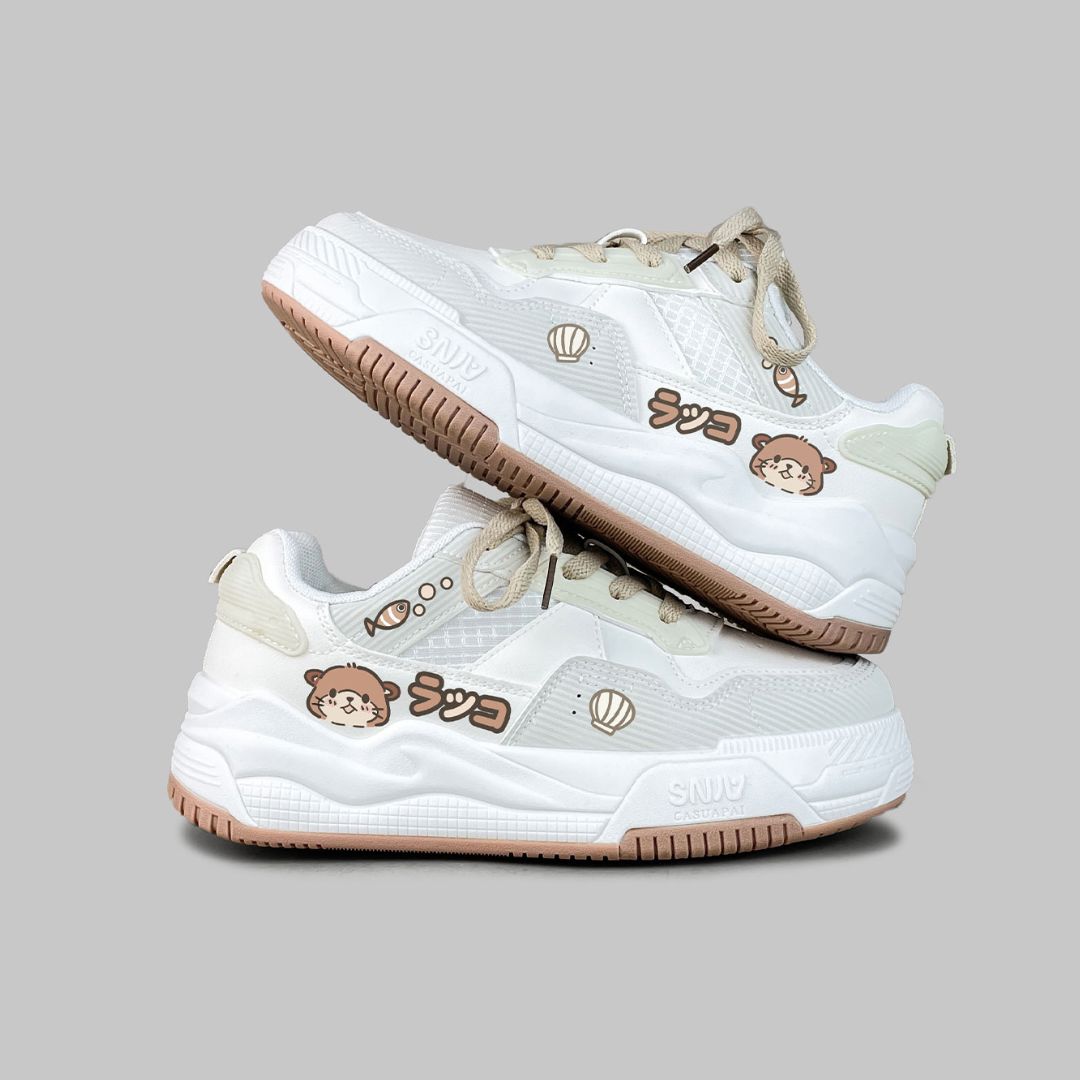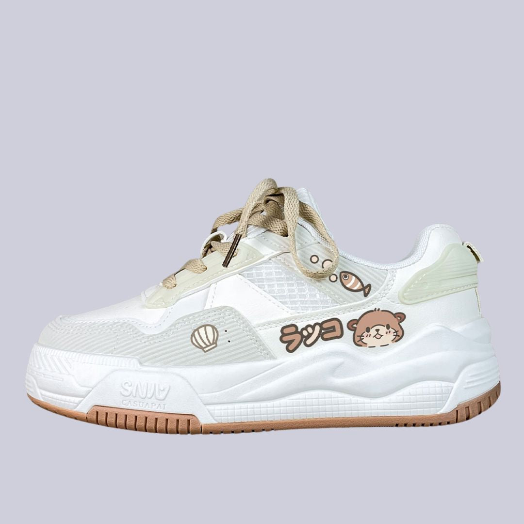 - Bring a splash of playful energy to your outfits with our Ultra Friendly Sea Otter White Sneakers. Featuring an adorable otter mascot surrounded by seashells and fish graphics plus Japanese lettering, these sneakers turn everyday wear into a cute seaside adventure. The supportive sole keeps you light on your feet from morning errands to late-night hangouts.
