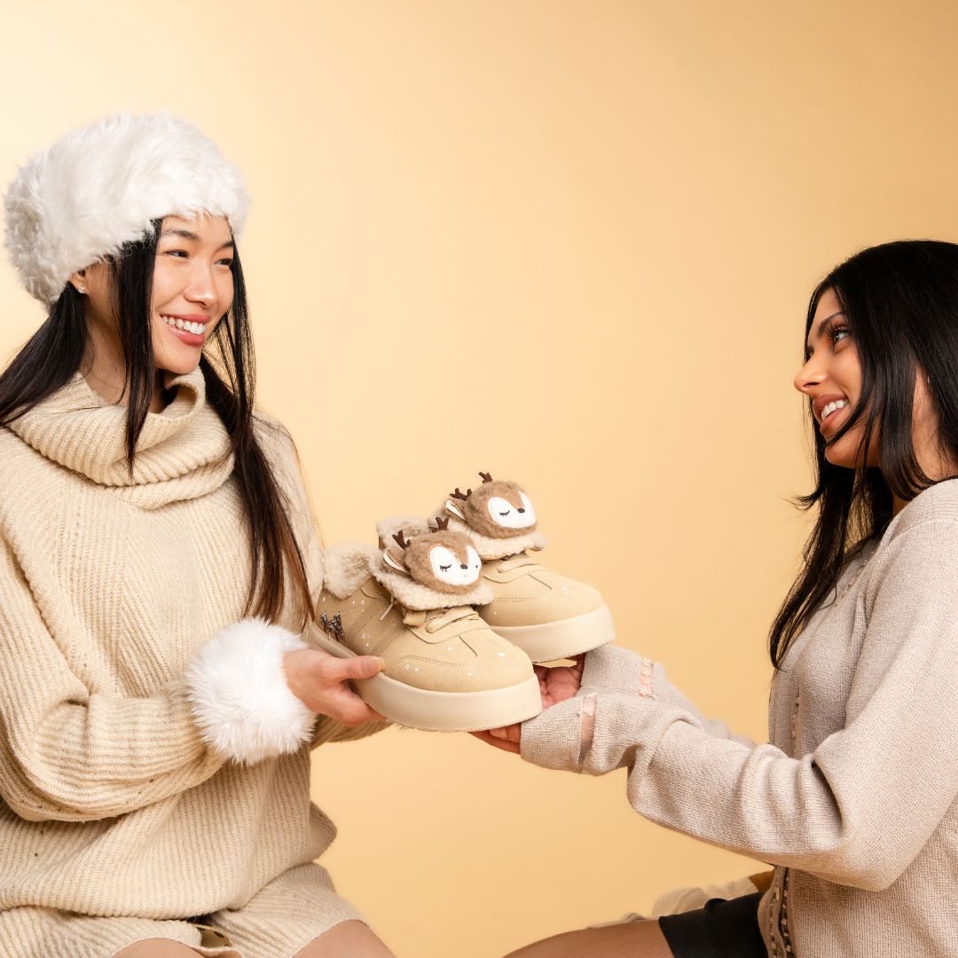 Cozy Sleepy Reindeer Chunky Beige Foldover Shoes - Women's Reindeer Bobo's House