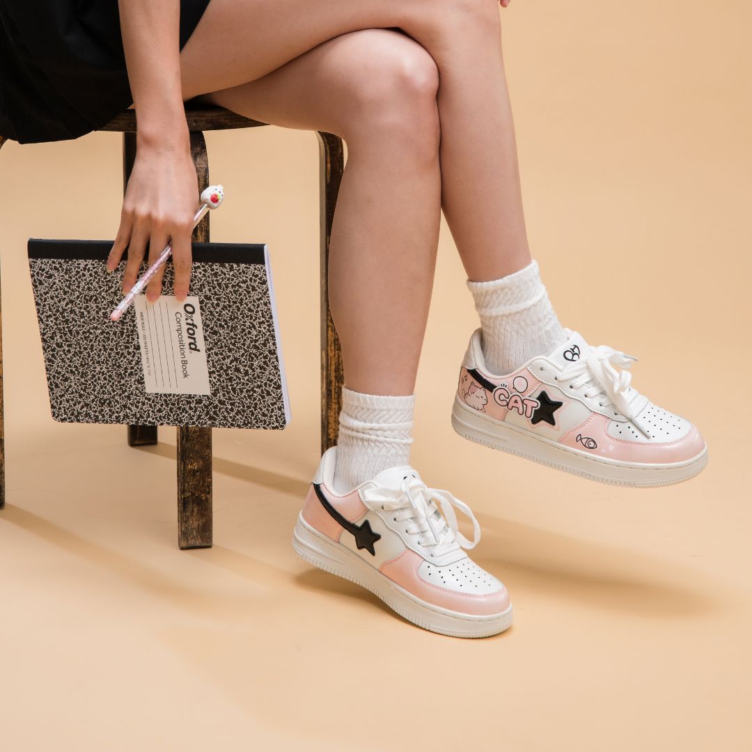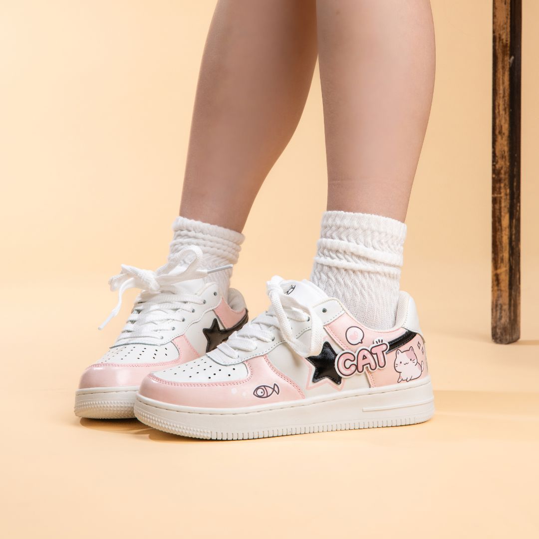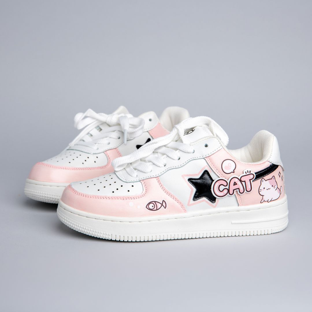 Hand Painted Loving Cat Strawberry Milk Pink Sneakers - Unisex Cat Bobo's House