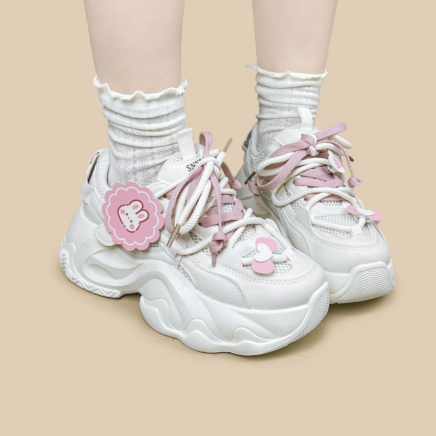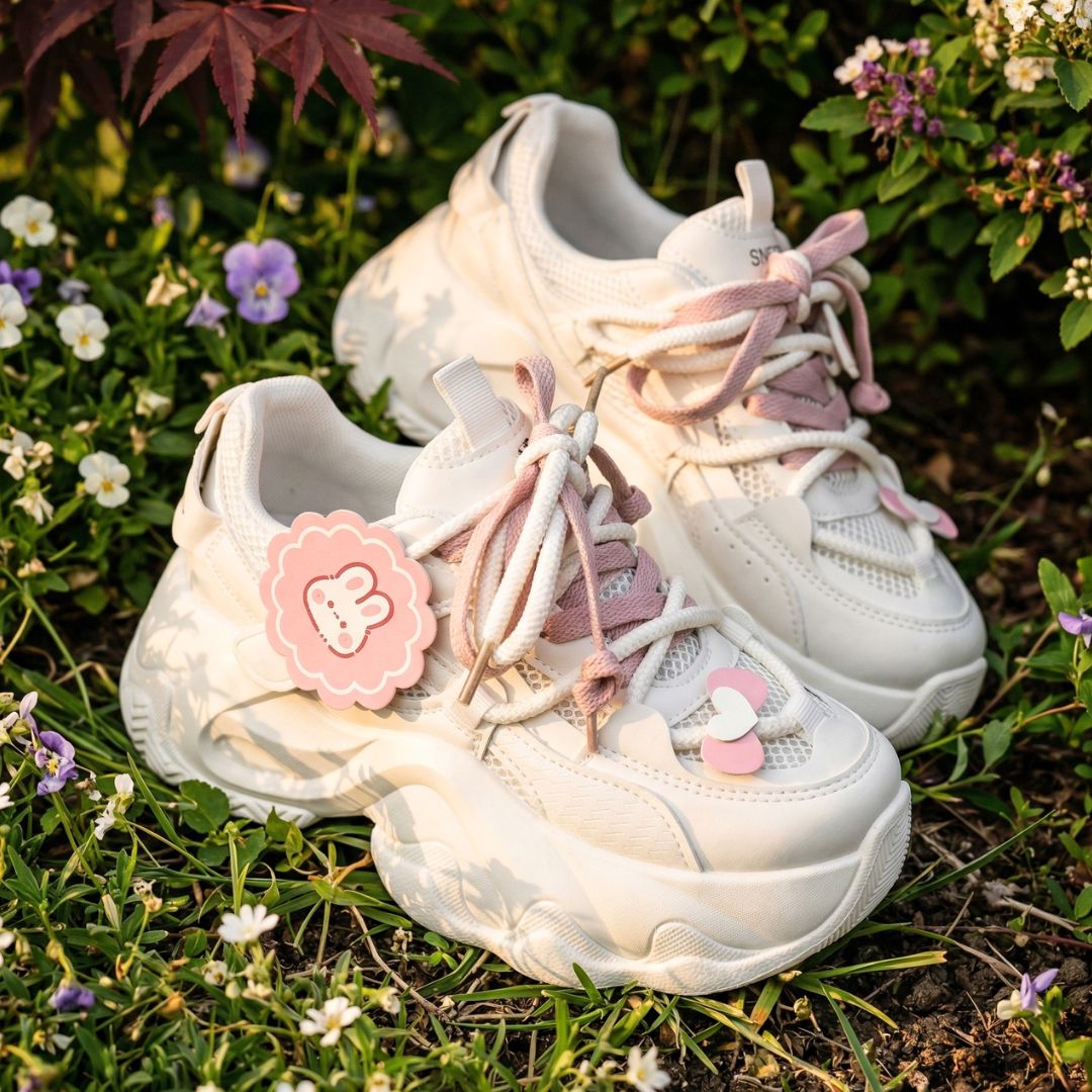 - A little sweet, a little playful, and made to brighten your every step 🌸 Meet the Blush Bunny Charm Chunky Sneakers, a feel-good pair inspired by soft pastel tones, cozy moments, and effortlessly cute styling.
