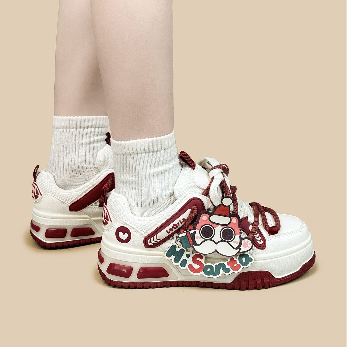 - Get ready to step into the most magical season of the year with the cutest holiday edition sneakers ever. Our Holiday Edition Santa Kitty Chunky Casual Red Sneakers feature our signature double-layered multi-colored laces and an irresistibly adorable Santa kitty design.ย