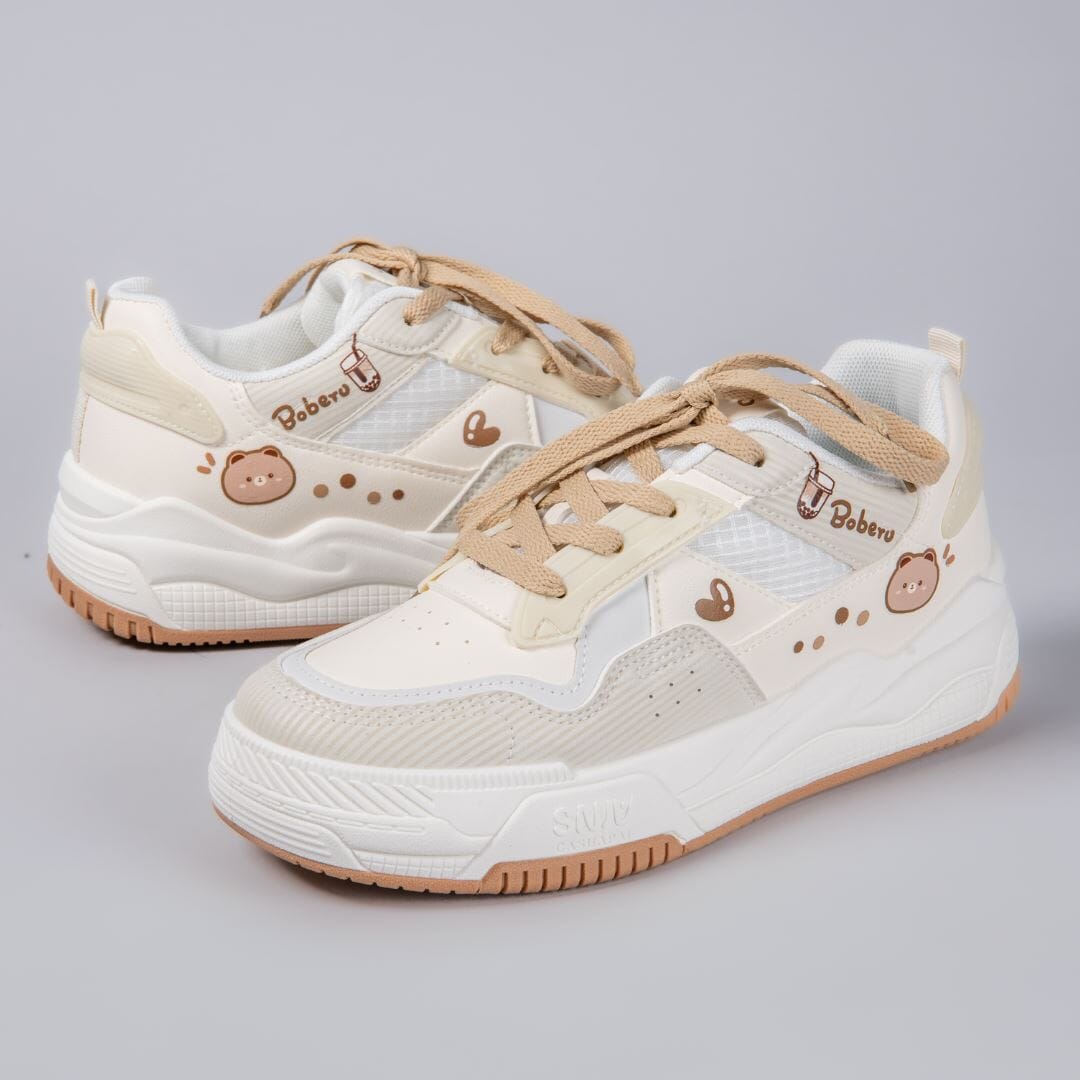 Get ready to be the center of attention with these precious Boba Lovin Bobearu White Sneakers