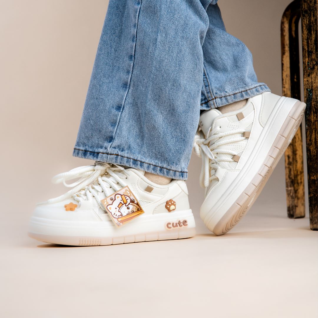 - Our Boba Lovin Kitty Chunky White Sneakers will sweeten up your shoe closet instantly! Designed with the most versatile brown and white colors and the comfiest chunky platform to keep your feet happy all day.