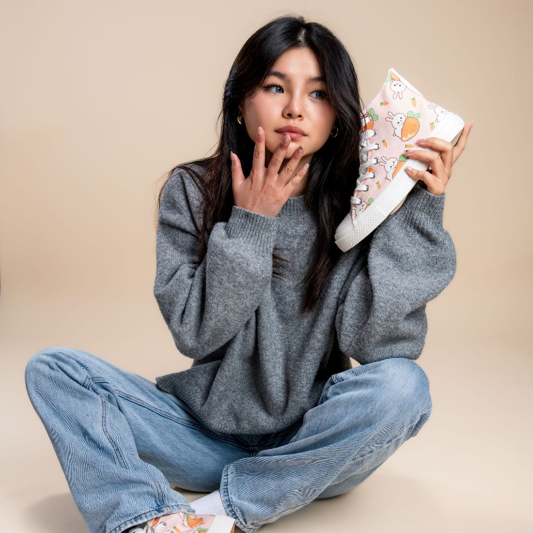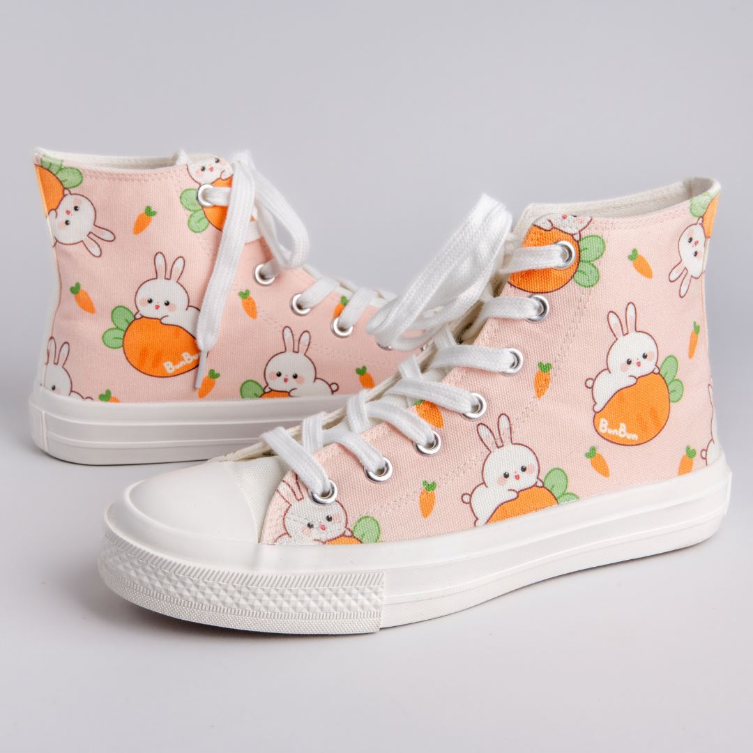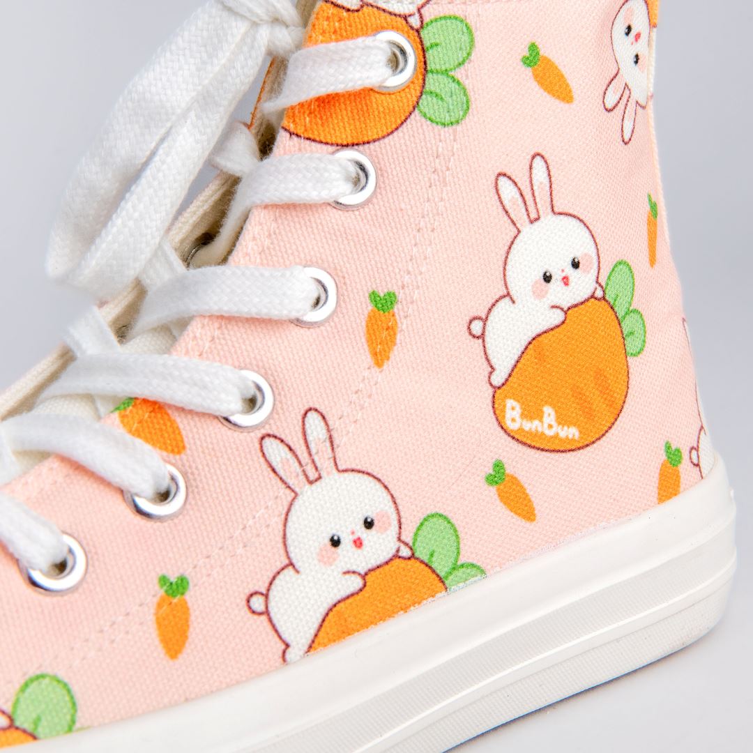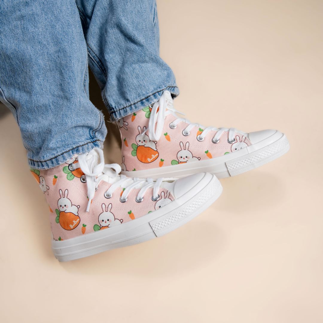 • Introducing our customized, Bobo's House exclusive Bun Bun the Bunny High Top Canvas Shoes, the perfect combination of cute and comfy everyday shoes.
