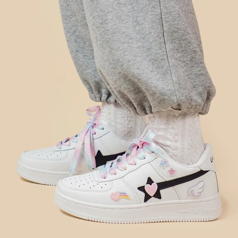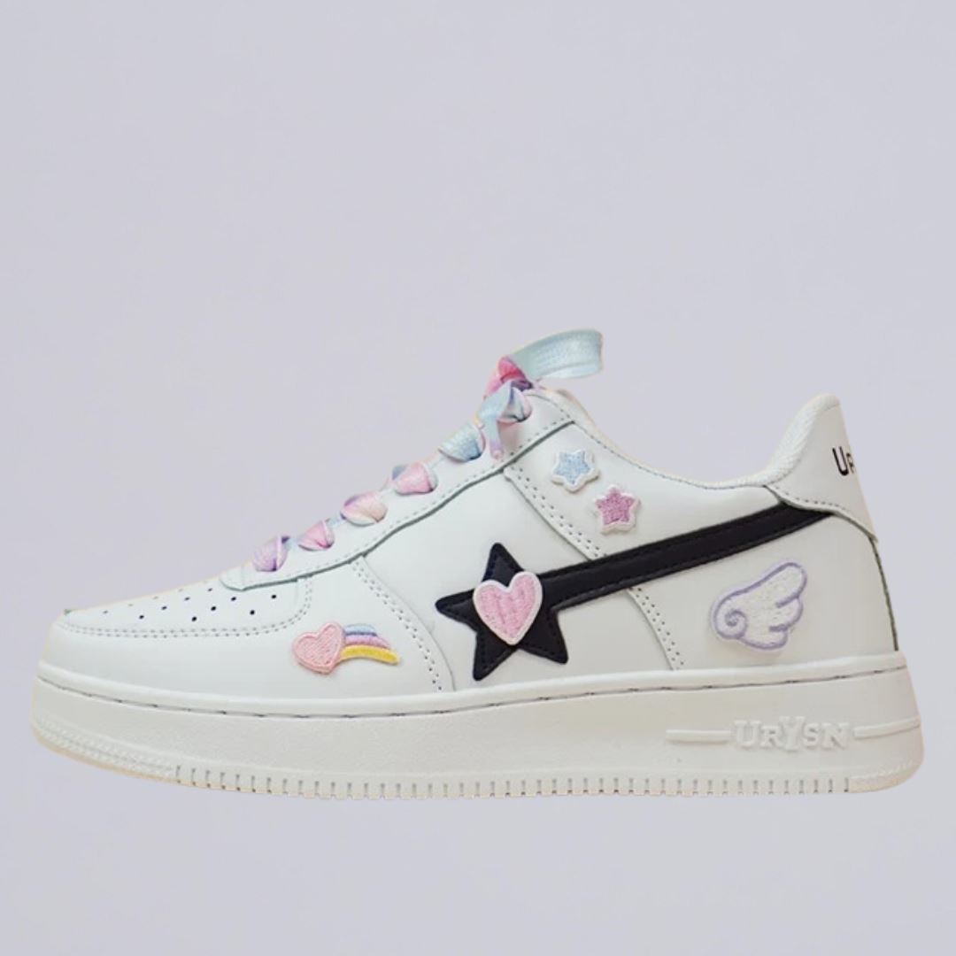 - Meet the MOST CHARMING new addition to your everyday shoe collection! Designed to pair perfectly with just about any look you're going for with a touch of heart and rainbow cuteness!