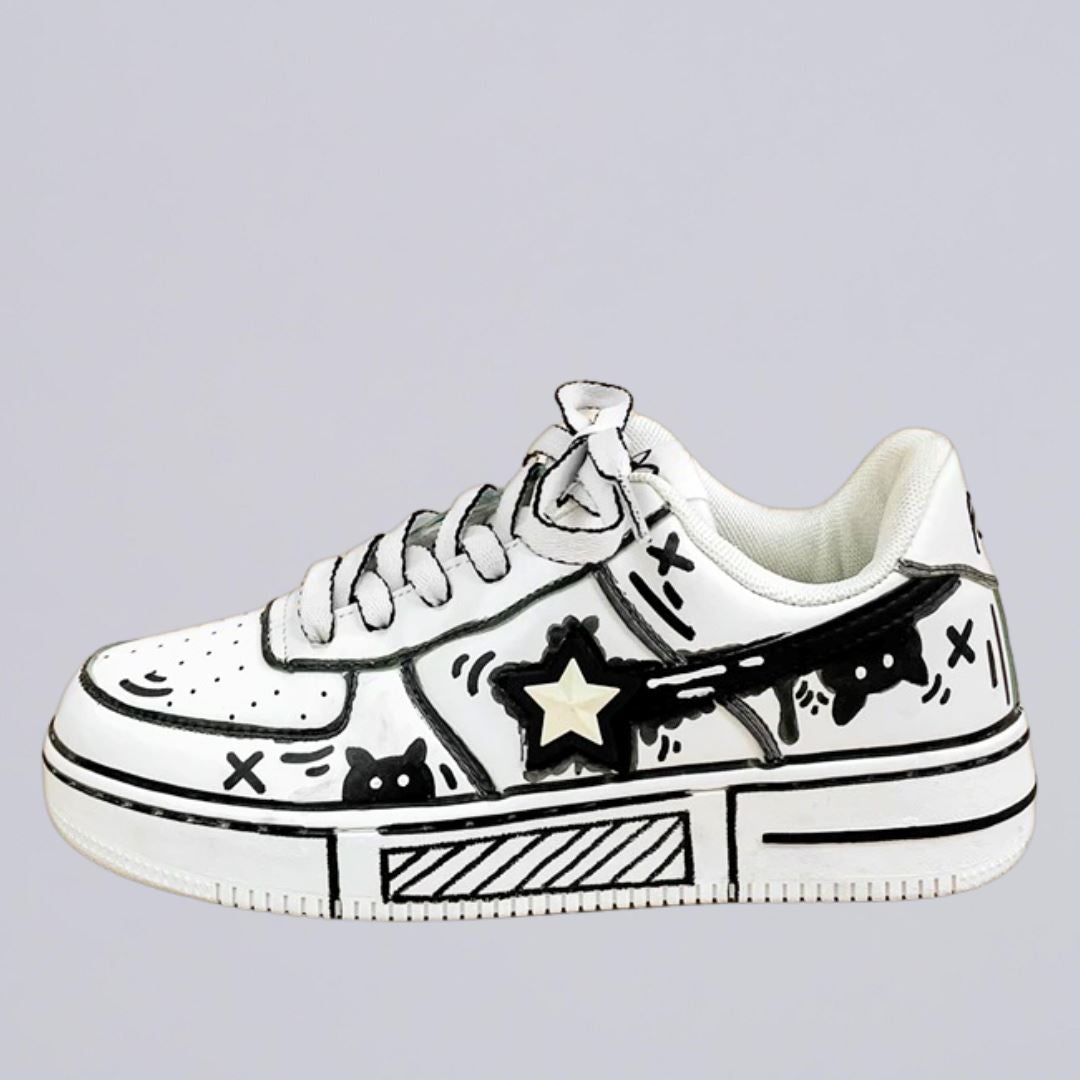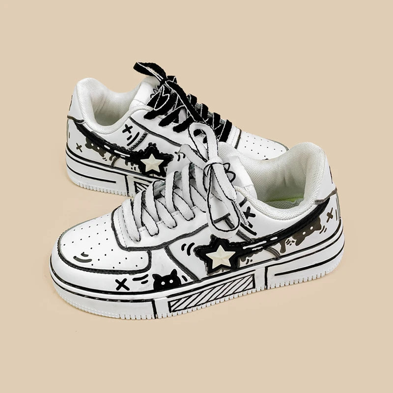 *CLEARANCE* Hand Painted Bold Contrast Casual White Shoes - Unisex