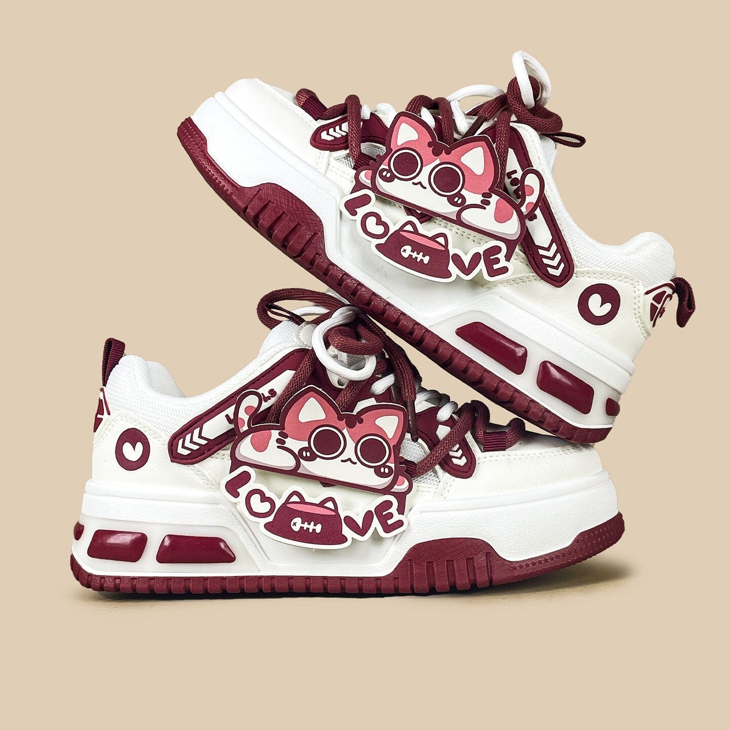 Sweetheart Meow Chunky Casual Red Sneakers – Unisex
